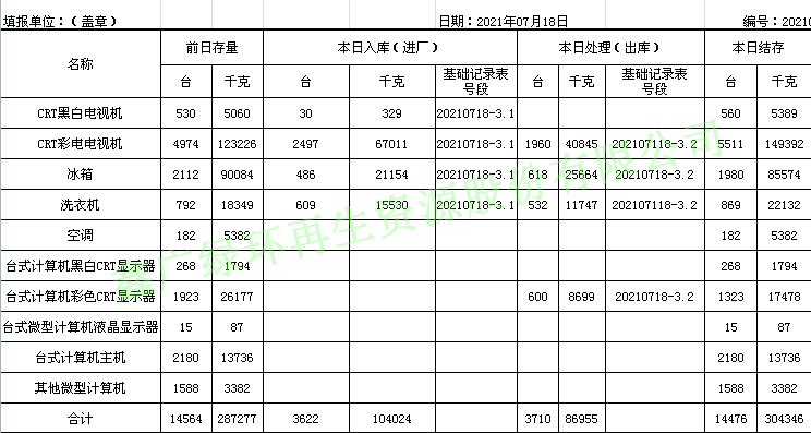 2021.07.18回收拆解統(tǒng)計(jì)表