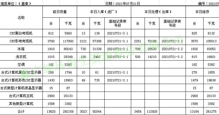 2021.07.21回收拆解統(tǒng)計表