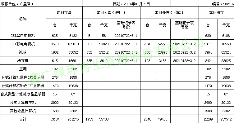 2021.07.22回收拆解統(tǒng)計(jì)表
