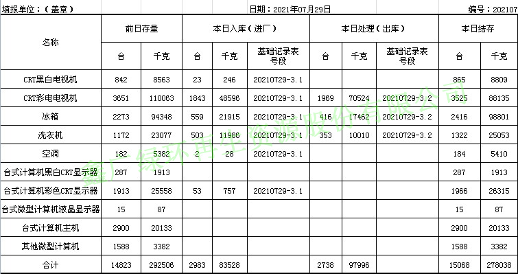 2021.07.29回收拆解統(tǒng)計表