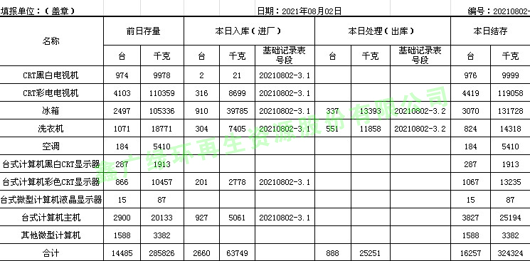 2021.08.01回收拆解統(tǒng)計(jì)表