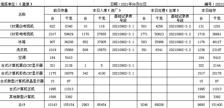 2021.09.01回收拆解統(tǒng)計表