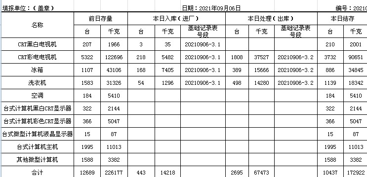 2021.09.06回收拆解統(tǒng)計表