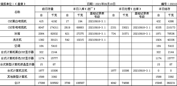 2021.09.18回收拆解統(tǒng)計(jì)表