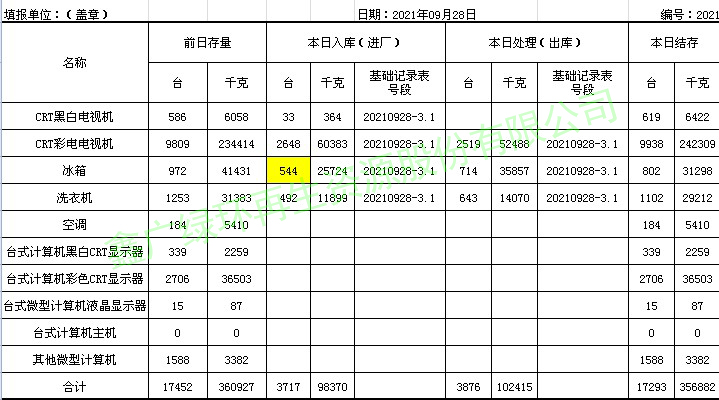 2021.09.28回收拆解統(tǒng)計(jì)表
