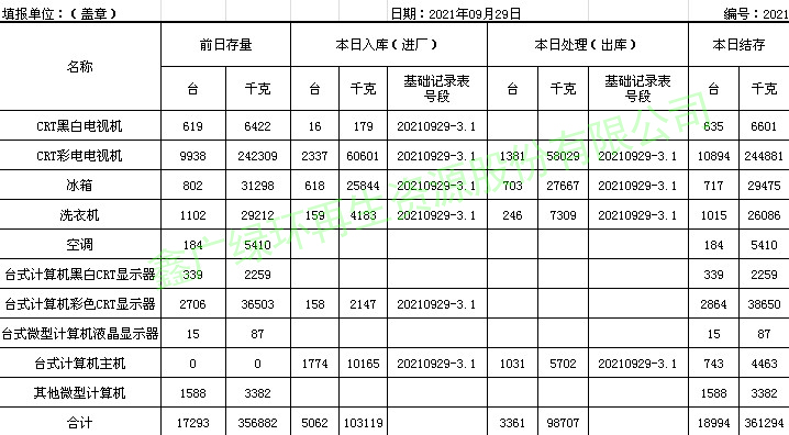 2021.09.29回收拆解統(tǒng)計表