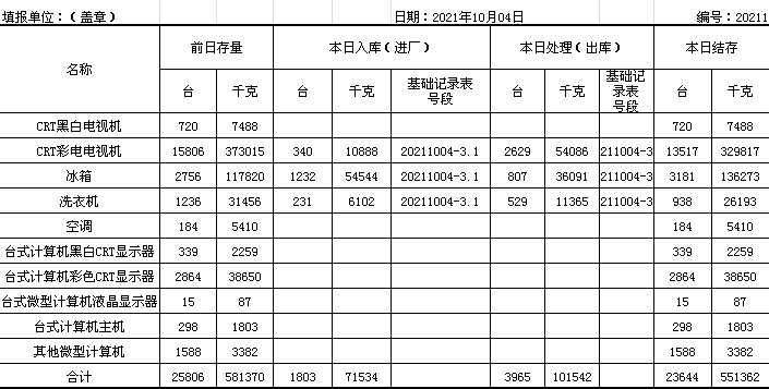 2021.10.04回收拆解統(tǒng)計(jì)表
