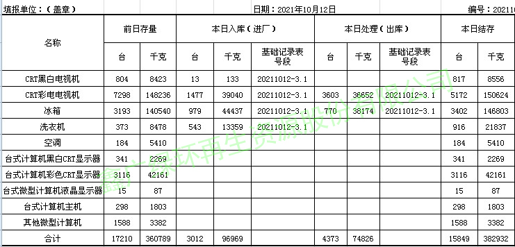 2021.10.12回收拆解統(tǒng)計表