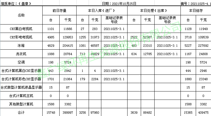 2021.10.25回收拆解統(tǒng)計表