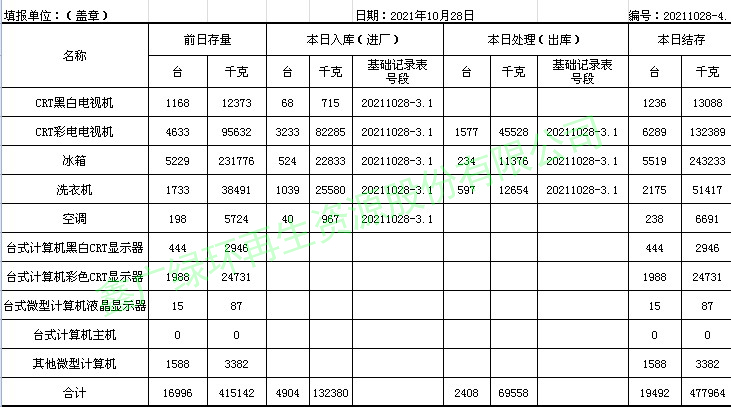 2021.10.28回收拆解統(tǒng)計(jì)表