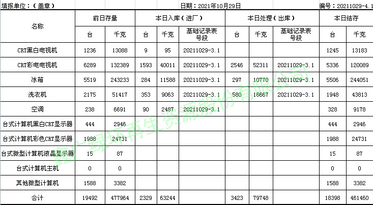2021.10.29回收拆解統(tǒng)計(jì)表