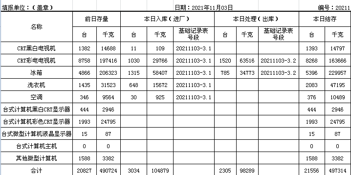 2021.11.03回收拆解統(tǒng)計(jì)表