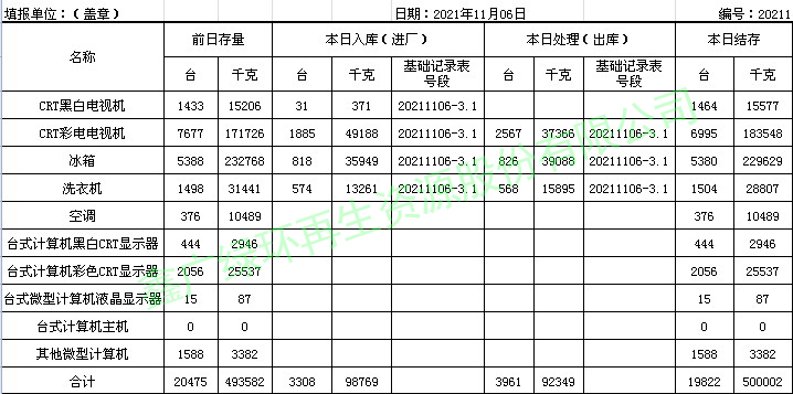 2021.11.07回收拆解統(tǒng)計(jì)表