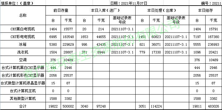 2021.11.07回收拆解統(tǒng)計(jì)表