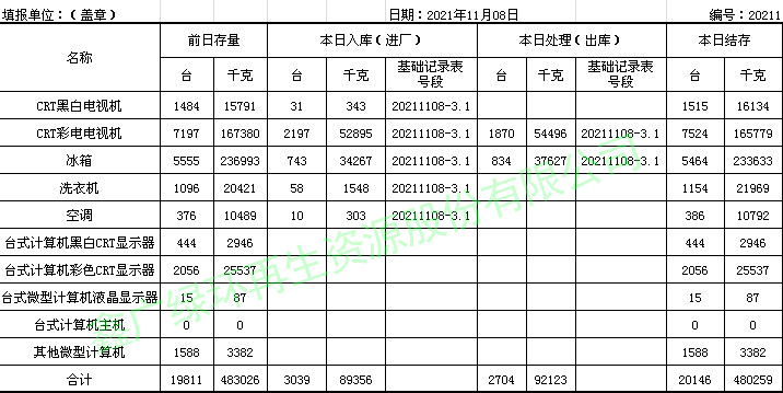 2021.11.08回收拆解統(tǒng)計(jì)表