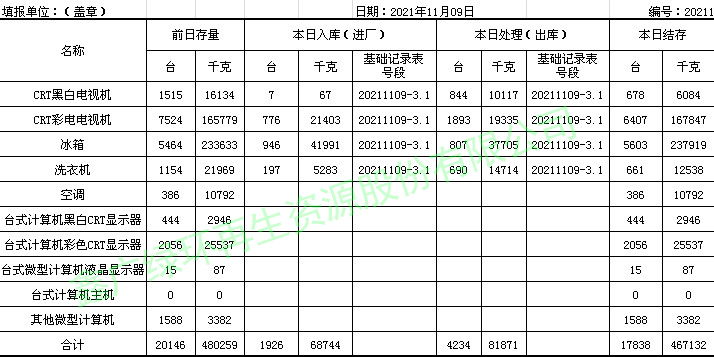 2021.11.09回收拆解統(tǒng)計(jì)表