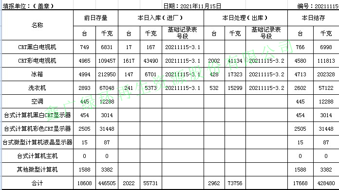 2021.11.14回收拆解統(tǒng)計(jì)表