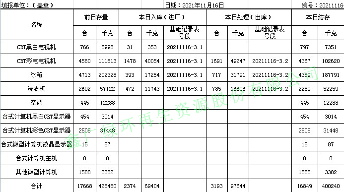 2021.11.16回收拆解統(tǒng)計表