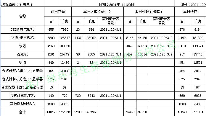 2021.11.21回收拆解統(tǒng)計表