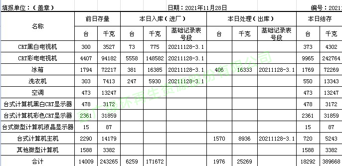 2021.11.28回收拆解統(tǒng)計表