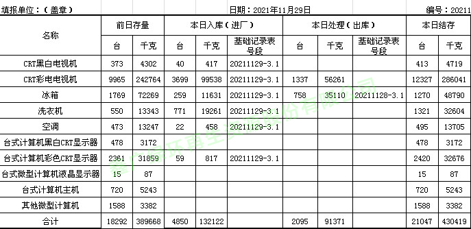 2021.11.29回收拆解統(tǒng)計(jì)表