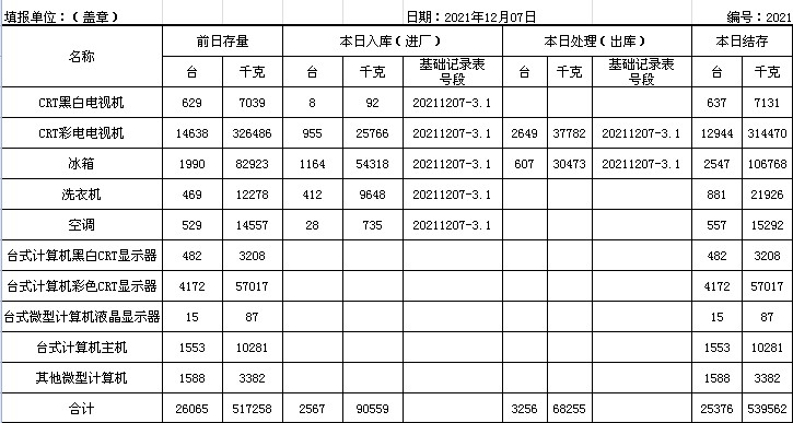 2021.12.07回收拆解統(tǒng)計(jì)表
