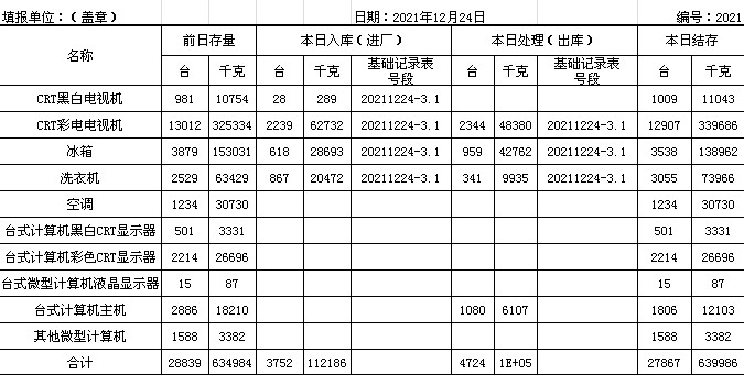 2021.12.24回收拆解統(tǒng)計(jì)表