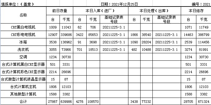 2021.12.25回收拆解統(tǒng)計(jì)表