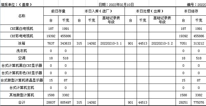 2022.02.11回收拆解統(tǒng)計(jì)表