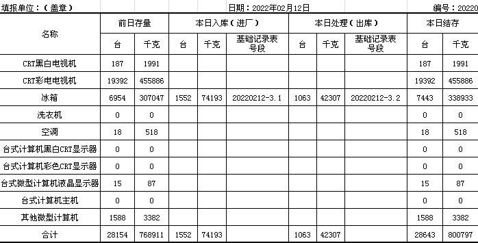 2022.02.12回收拆解統(tǒng)計(jì)表