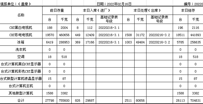 2022.02.16回收拆解統(tǒng)計(jì)表