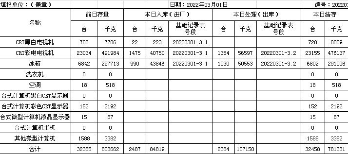 2022.03.01回收拆解統(tǒng)計(jì)表