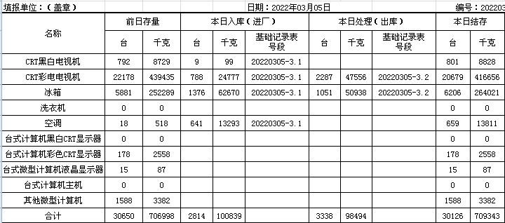 2022.03.05回收拆解統(tǒng)計(jì)表