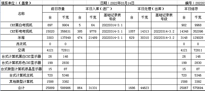 2022.03.14回收拆解統(tǒng)計(jì)表