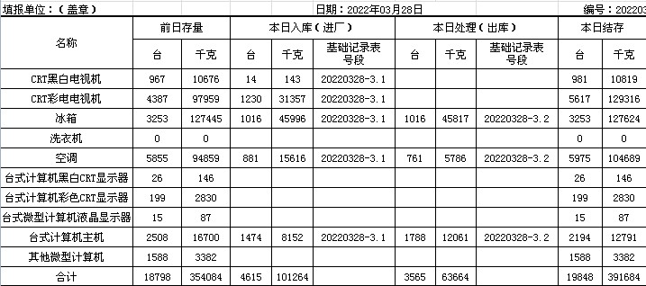 2022.03.28回收拆解統(tǒng)計(jì)表
