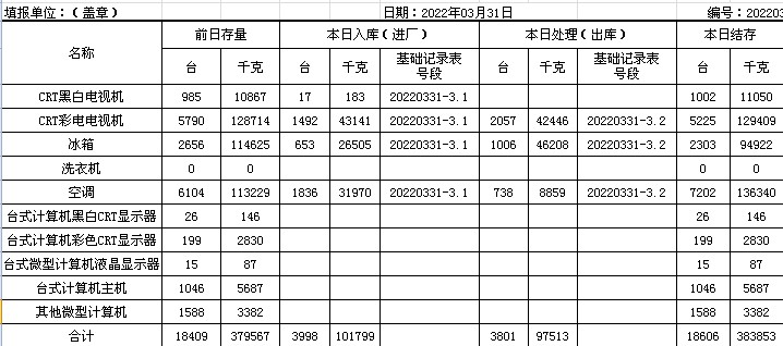 2022.03.31回收拆解統(tǒng)計表