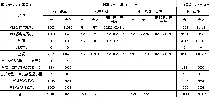 2022.04.01回收拆解統(tǒng)計(jì)表