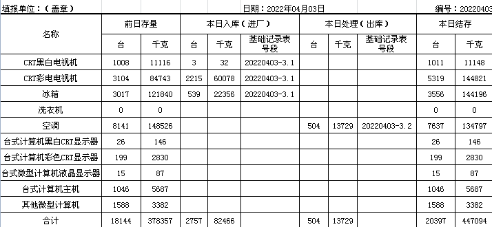 2022.04.04回收拆解統(tǒng)計(jì)表