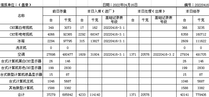 2022.04.16回收拆解統(tǒng)計(jì)表