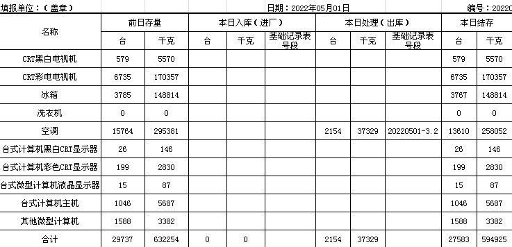 2022.05.01回收拆解統(tǒng)計(jì)表