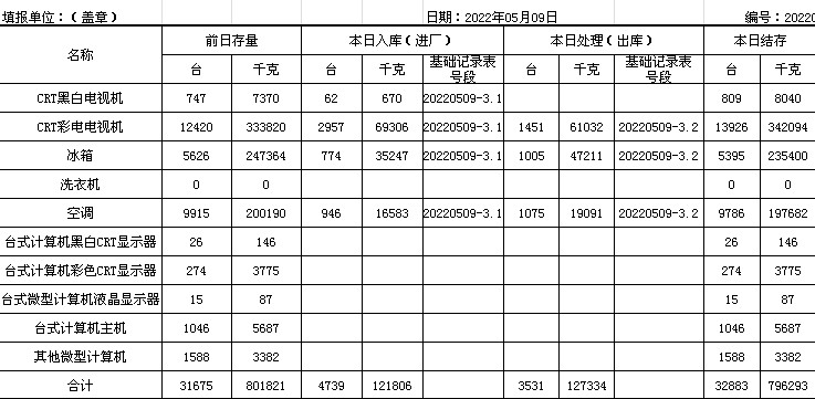 2022.05.09回收拆解統(tǒng)計表