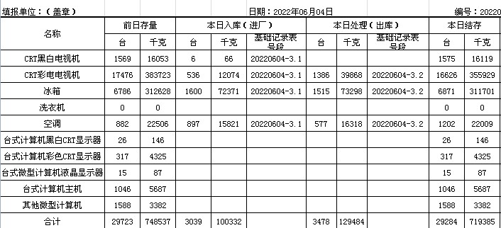 2022.06.04回收拆解統(tǒng)計(jì)表