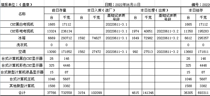 2022.06.11回收拆解統(tǒng)計(jì)表
