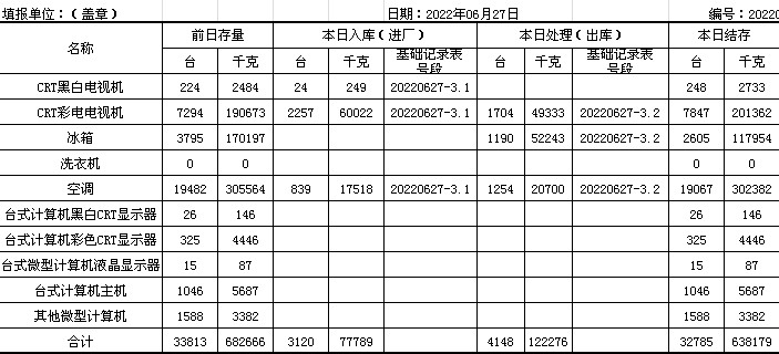 2022.06.27回收拆解統(tǒng)計(jì)表