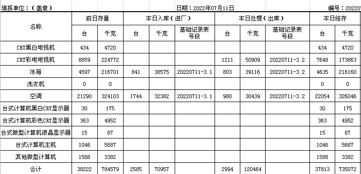 2022.07.11回收拆解統(tǒng)計(jì)表