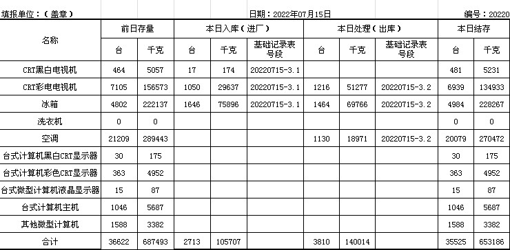 2022.07.15回收拆解統(tǒng)計(jì)表