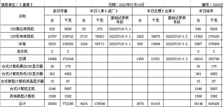 2022.07.18回收拆解統(tǒng)計(jì)表