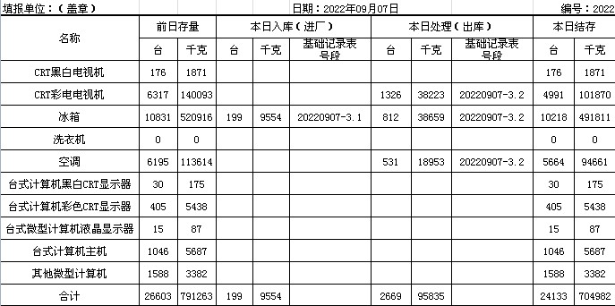 2022.09.07回收拆解統(tǒng)計(jì)表