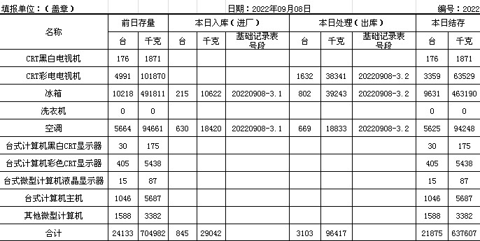 2022.09.08回收拆解統(tǒng)計表