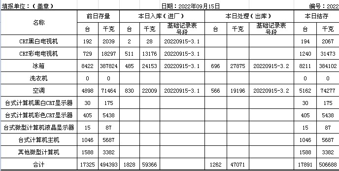 2022.09.15回收拆解統(tǒng)計(jì)表